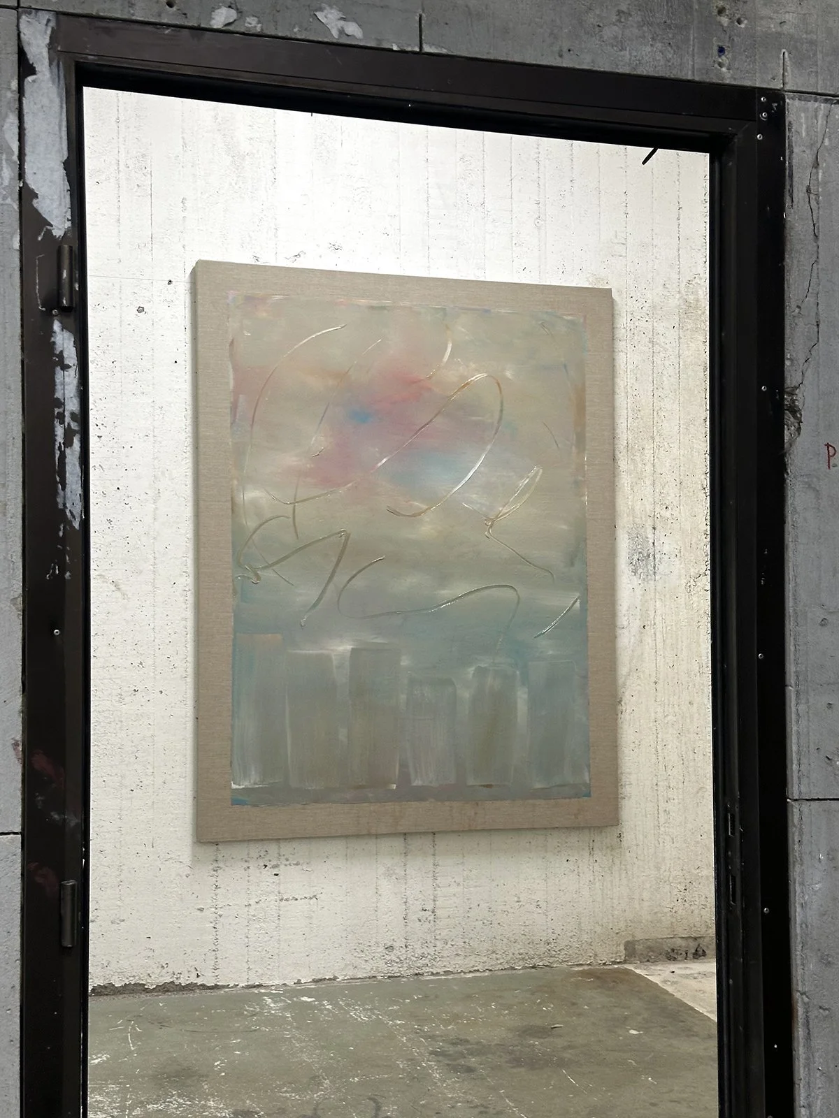 El-Sayegh’s recent works – complexly layered paintings – incorporate images of violence which have been widely disseminated through digital media within her own adult life. For El-Sayegh, these images speak to the simultaneous over-visibility and lack of representation, or agency, of subjects in states of duress. Images are reproduced interminably through both formal and informal media, and yet their subjects remain powerless and often nameless. The endless reproduction of images of violence in our contemporary moment has a deadening effect; while the quality of images progressively degrades, stories are lost, forgotten, or suppressed within dominant narratives.